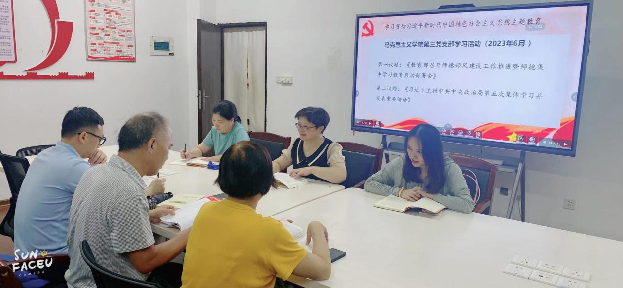 教育部6月6日召開師德師風(fēng)建設(shè)工作推進(jìn)暨師德集中學(xué)習(xí)教育啟動(dòng)部署會(huì),部署開展師德集中學(xué)習(xí)教育,推進(jìn)各地各校加強(qiáng)師德師風(fēng)建設(shè)工作。5月29日習(xí)近平總書記在主持中共中央政治局第五次集體學(xué)習(xí)時(shí)發(fā)表的重要講話。馬克思主義學(xué)院第三黨支部組織全體黨員于6月21日中午在圖書館1101會(huì)議室對(duì)以上兩個(gè)內(nèi)容進(jìn)行了專題學(xué)習(xí),我們深刻認(rèn)識(shí)到師德師風(fēng)直接影響教師隊(duì)伍整體素質(zhì),關(guān)乎培養(yǎng)什么人、怎樣培養(yǎng)人、為誰(shuí)培養(yǎng)人這個(gè)教育的根本問題,關(guān)乎立德樹人根本任務(wù)的落實(shí),以及培養(yǎng)社會(huì)主義建設(shè)者和接班人的教育使命和職責(zé)。作為高職院校的思政教師,更要把師德師風(fēng)建設(shè)擺在更重要位置,切實(shí)增強(qiáng)為黨育人、為國(guó)育才的責(zé)任感、使命感和緊迫感。要立足大局,深入研判師德師風(fēng)建設(shè)的新形勢(shì)新要求,抓牢抓實(shí)師德師風(fēng)建設(shè)各項(xiàng)重點(diǎn)工作。