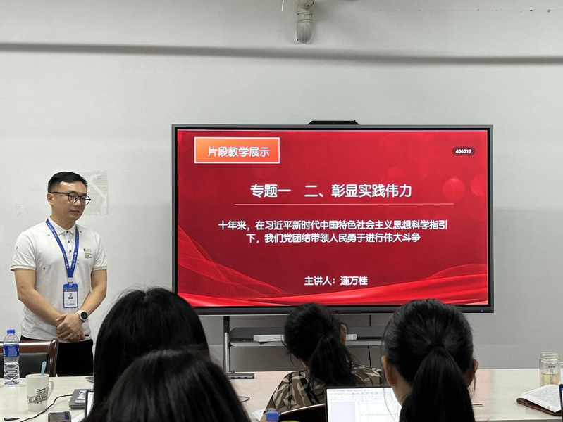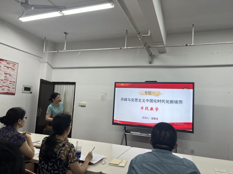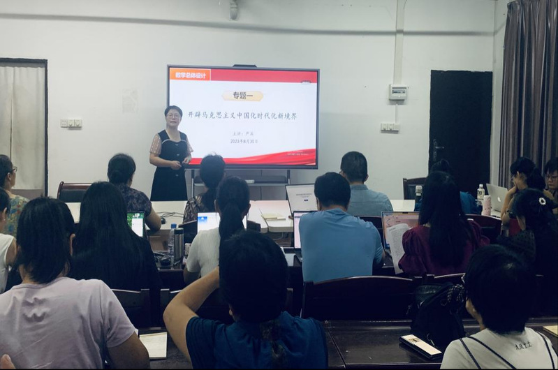 2023年8月30日,馬克思主義學(xué)院“形勢與政策”教研室在圖書館1101會議室開展了本學(xué)期“優(yōu)·美”教學(xué)工作坊第一次教研活動。本次教研活動圍繞“形勢與政策”課專題一“開辟馬克思主義中國化時代化新境界”展開,由嚴(yán)兵老師主講,藍素瓊和連萬桂老師進行無生片段教學(xué),全體馬院教師參加了此次集體備課,這是首次全員參與的教研活動。