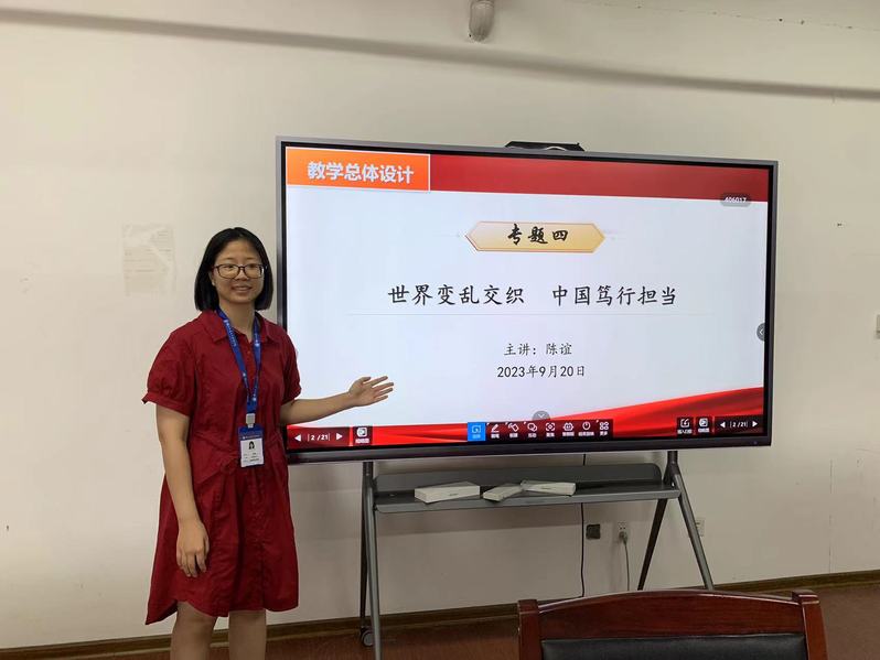 陳誼老師從全面認(rèn)識變革和動蕩兩種趨勢持續(xù)演進、團結(jié)與分裂兩種取向相互激蕩的世界圖景出發(fā),讓學(xué)生深刻認(rèn)識新時代中國以因勢而謀、迎難而上的進取精神,胸懷天下、引領(lǐng)時代的大國擔(dān)當(dāng),持續(xù)為變亂交織的世界提供破解難題的良方、凝聚團結(jié)合作的力量。