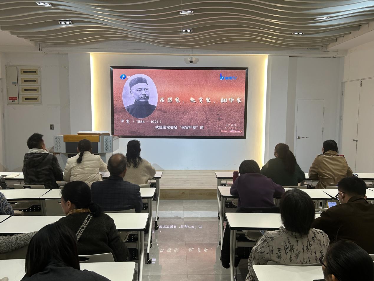 為深入學習貫徹習近平文化思想,紀念嚴復誕辰170周年,2024年1月2日,馬克思主義學院組織全體思政教師在鑒知樓時代大講堂開展由省委宣傳部、省委教育工委和省教育廳聯合主辦的“百年天演 鑒知未來——福建省大中小學同上一堂思政課”主題學習活動。