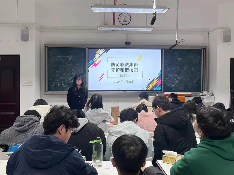 為進(jìn)一步擴(kuò)大防范非法集資宣傳,有效降低潛在非法集資風(fēng)險(xiǎn),2024年2月26日,法學(xué)社于南區(qū)綜合實(shí)訓(xùn)大樓405教室開展“防范非法集資 守護(hù)和諧校園”宣傳活動(dòng)。