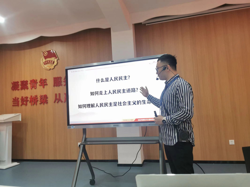 為上好“習近平新時代中國特色社會主義思想概論”課程,更好推動習近平新時代中國特色社會主義思想進教材、進課堂、進頭腦,2024年3月29日,馬克思主義學院習近平新時代中國特色社會主義思想概論教研室開展了本學期第九次思政課教師“大練兵”暨“優(yōu)·美”教學工作坊集體備課活動。本次活動圍繞課程第八章“發(fā)展全過程人民民主”進行集體教研。本次集體備課由范碧華老師擔任主講,連萬桂與藍素瓊老師分別做片段教學展示。