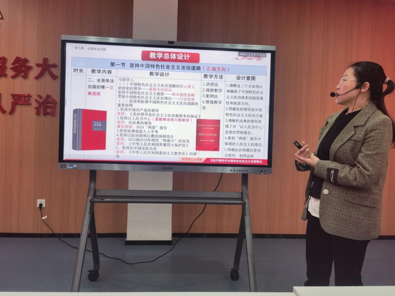 2024年3月29日,馬克思主義學(xué)院習(xí)近平新時代中國特色社會主義思想概論教研室開展了本學(xué)期第十次思政課教師“大練兵”暨“優(yōu)·美”教學(xué)工作坊集體備課活動。活動圍繞本課程的第九章“全面依法治國 ”進(jìn)行教學(xué)研討。本次集體備課由劉麗萍老師擔(dān)任主講,袁穎婷老師做片段教學(xué)展示。