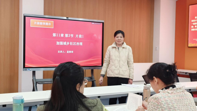 為更好地組織“習(xí)近平新時代中國特色社會主義思想概論”課程教學(xué),推動習(xí)近平新時代中國特色社會主義思想進(jìn)教材、進(jìn)課堂、進(jìn)頭腦,2024年4月7日,馬克思主義學(xué)院習(xí)近平新時代中國特色社會主義思想概論教研室開展了本學(xué)期第十二次思政課教師“大練兵”暨“優(yōu)·美”教學(xué)工作坊集體備課活動。活動圍繞本課程的第十一章“ 以保障和改善民生為重點(diǎn)加強(qiáng)社會建設(shè)”進(jìn)行教學(xué)研究。本次集體備課由張瑞青老師擔(dān)任主講,范碧華與藍(lán)素瓊老師分別做片段教學(xué)展示。