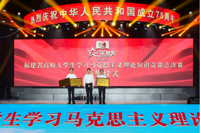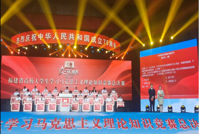 為熱烈慶祝中華人民共和國(guó)成立75周年,堅(jiān)持不懈用習(xí)近平新時(shí)代中國(guó)特色社會(huì)主義思想鑄魂育人,引導(dǎo)青年學(xué)生立報(bào)國(guó)強(qiáng)國(guó)大志向、做挺膺擔(dān)當(dāng)奮斗者,9月27日,由中共福建省委教育工委主辦,福建省高校思想政治理論課教學(xué)指導(dǎo)委員會(huì)、福建教育電視臺(tái)承辦的第九季福建省高校大學(xué)生學(xué)習(xí)馬克思主義理論“一‘馬’當(dāng)先”知識(shí)競(jìng)賽總決賽在福州大學(xué)旗山校區(qū)落下帷幕。我院黨委書(shū)記陳宜大攜師生代表參與活動(dòng)觀摩。