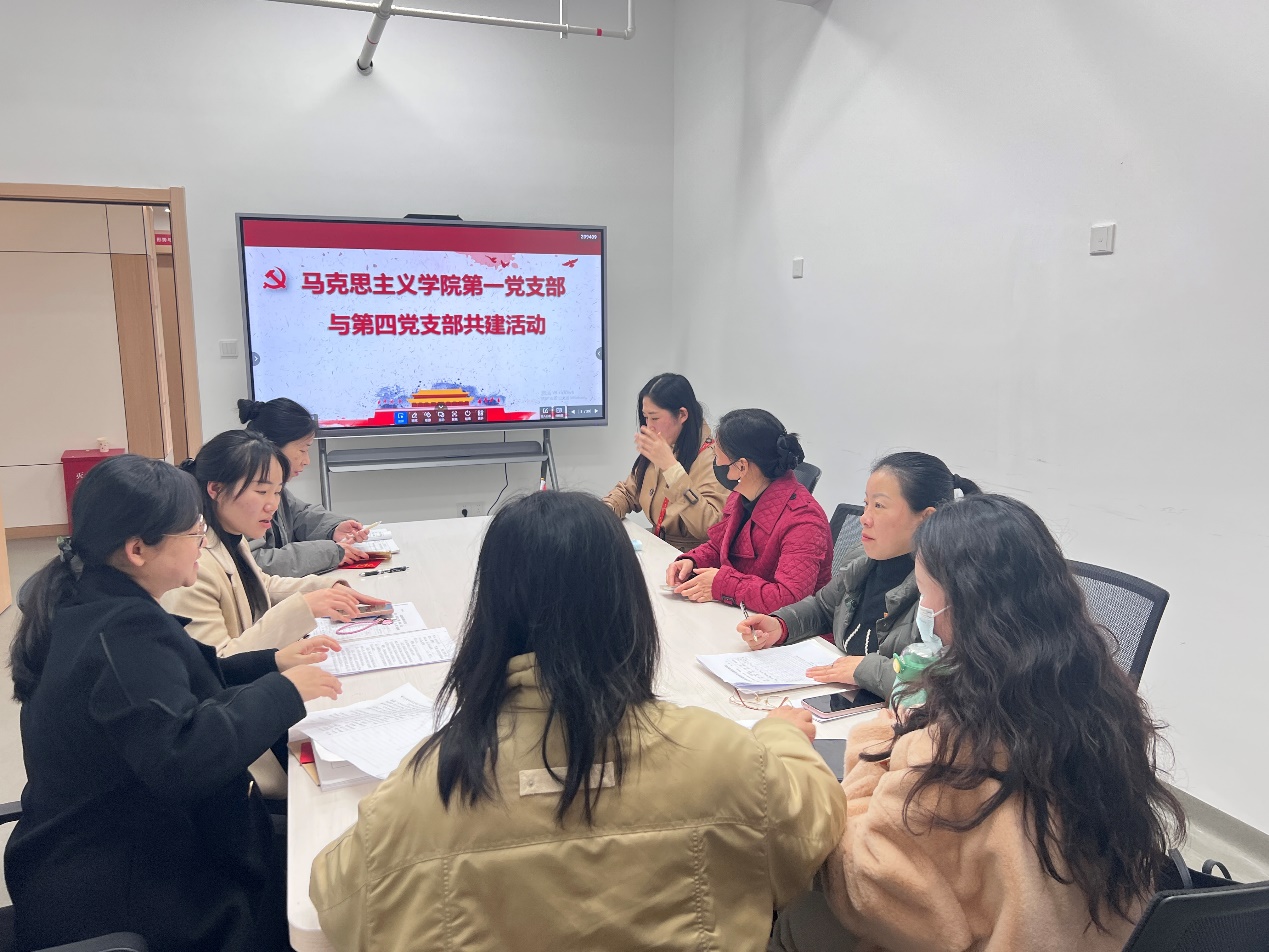 為進(jìn)一步增強(qiáng)黨支部的凝聚力和戰(zhàn)斗力,促進(jìn)黨員之間的交流與協(xié)作,近日,馬克思主義學(xué)院第一黨支部和第四黨支部開(kāi)展共建活動(dòng)。兩個(gè)支部立足各自的特點(diǎn)和優(yōu)勢(shì),相互學(xué)習(xí)借鑒,取長(zhǎng)補(bǔ)短,共同提高。