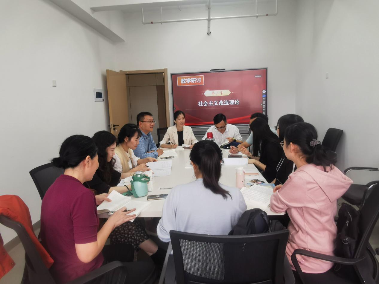 接著,老師們圍繞第三章教學(xué)內(nèi)容《社會(huì)主義改造理論》的學(xué)情、教學(xué)目標(biāo)、教學(xué)重難點(diǎn)、教學(xué)方法、教學(xué)過程等方面展開教學(xué)研討,分享優(yōu)質(zhì)教學(xué)資源和先進(jìn)教學(xué)法,為“講準(zhǔn)、講深、講透、講活”理論奠定堅(jiān)實(shí)基礎(chǔ)。
