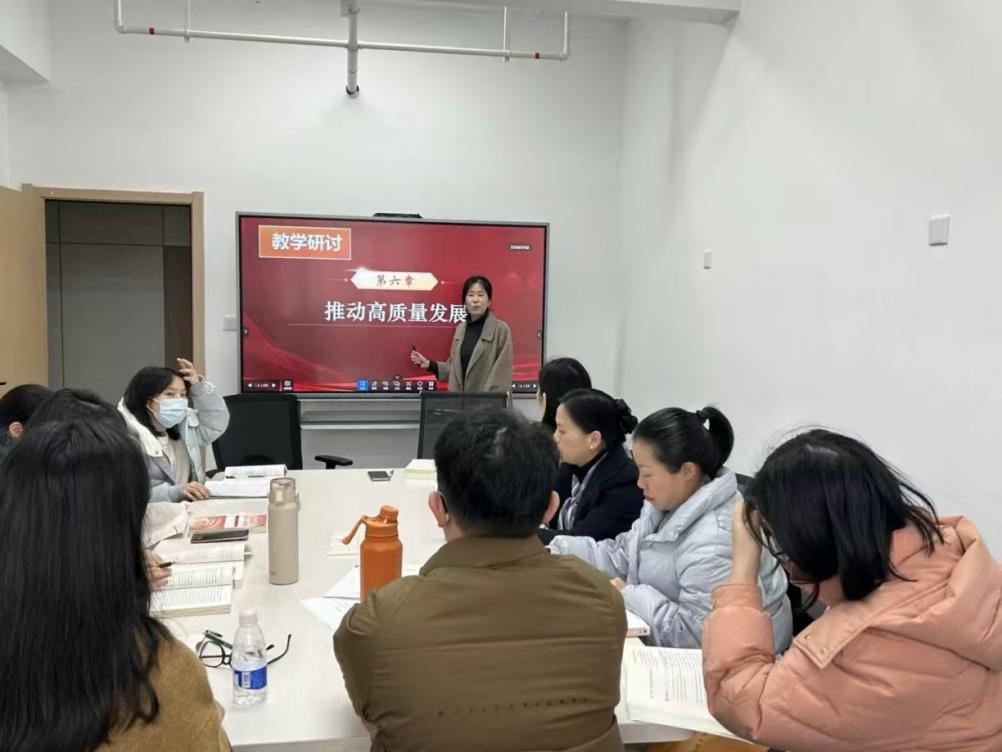 為更好地組織“習(xí)近平新時代中國特色社會主義思想概論”課程教學(xué),推動習(xí)近平新時代中國特色社會主義思想進(jìn)教材、進(jìn)課堂、進(jìn)頭腦,近日,馬克思主義學(xué)院習(xí)近平新時代中國特色社會主義思想概論教研室開展了本學(xué)期思政課教師“大練兵”暨“優(yōu)·美”教學(xué)工作坊集體備課活動。此次備課會聚焦于全面深化改革開放和推動高質(zhì)量發(fā)展兩大主題,旨在深化教師對習(xí)近平新時代中國特色社會主義思想的理解,并將黨的最新理論成果融入教學(xué)實踐中,以提高教學(xué)質(zhì)量,培養(yǎng)擔(dān)當(dāng)民族復(fù)興大任的時代新人。
