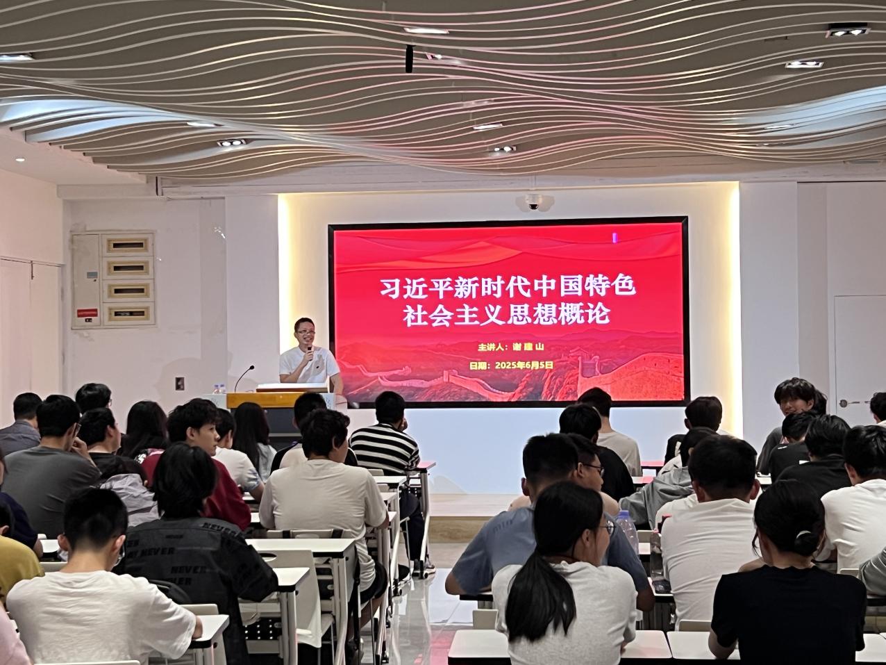 課堂上,謝建山書記緊扣“全面從嚴(yán)治黨”這一主題,結(jié)合歷史與現(xiàn)實、理論與案例,多維度展開闡釋。他首先強(qiáng)調(diào),學(xué)習(xí)習(xí)近平新時代中國特色社會主義思想是新時代青年的“必修課”,這一思想為黨和國家事業(yè)發(fā)展提供了根本遵循,也是理解全面從嚴(yán)治黨的理論基石。隨后,他以國際上部分政黨因腐敗潰敗的典型案例為鏡鑒,深刻剖析教訓(xùn),引發(fā)學(xué)生對“打鐵必須自身硬”的深刻思考。