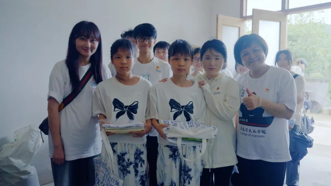 全國黨建樣板支部馬克思主義學院第一黨支部與南洋村黨支部簽約共建,雙方約定整合資源,開展理論政策宣講、鄉(xiāng)村交通規(guī)劃和電商助農(nóng)等活動,共同推動鄉(xiāng)村發(fā)展。師生們還向村里的孩子們捐贈了兒童讀本??粗⒆觽兣踔鴷男δ槪颊處煼侗倘A感慨:“南洋村的故事告訴我們,思政課不該困在課本里。當學生們親眼看見‘民族文化’如何變成旅游招牌,‘生態(tài)保護’如何帶來經(jīng)濟收益,‘紅色基因’如何凝聚發(fā)展力量,他們才會真正理解‘家國情懷’四個字的分量。”