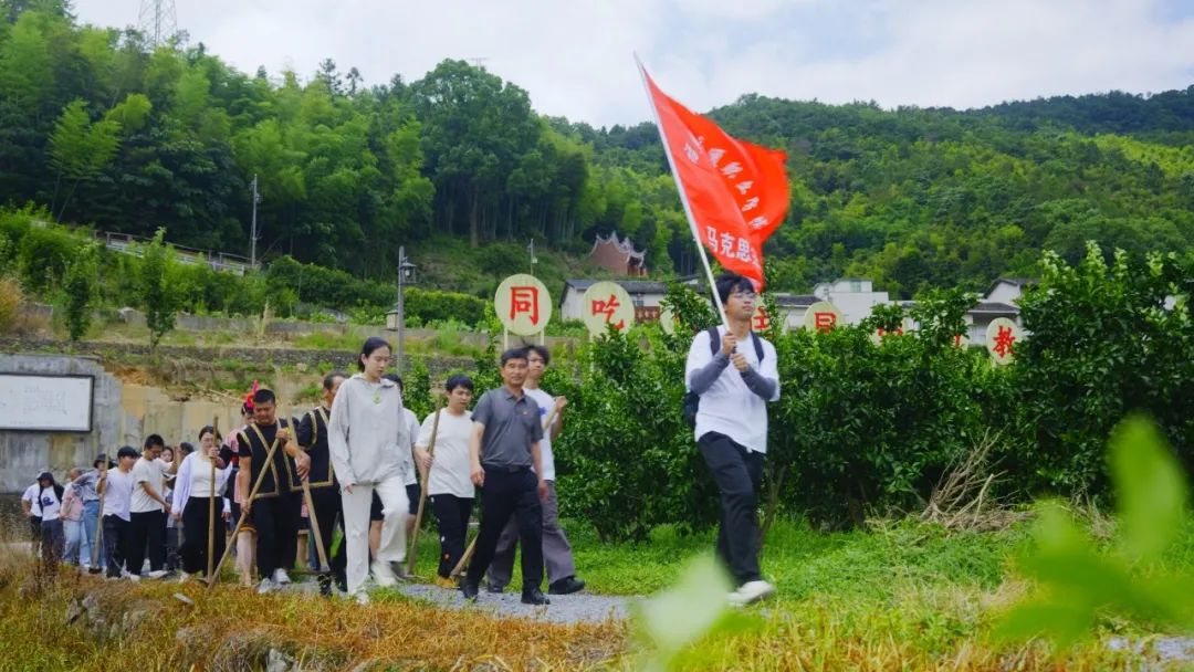 “黨建怎么帶活一個村?”“畬族婚俗有哪些講究?”“革命時期南洋村出過哪些英雄?”“如何打造一村一品?”四個訪談小組帶著問題穿梭在村莊各處。掛職干部展示的“紅黑榜”臺賬、畬族阿婆講述的鳳凰傳說、老黨員回憶的“地下交通站”往事……這些帶著泥土氣息的答案,讓學生們在筆記本上寫得密密麻麻。師生們還走進砂糖橘果園參與除草、修剪等勞動,了解特色水果的種植技術,親身體驗農(nóng)業(yè)生產(chǎn)的艱辛與樂趣。學生代表王雨涵說出“原來鄉(xiāng)村振興需要我們懂政策、懂技術,更要懂民心”時,掌聲里滿是青春與土地的共鳴。