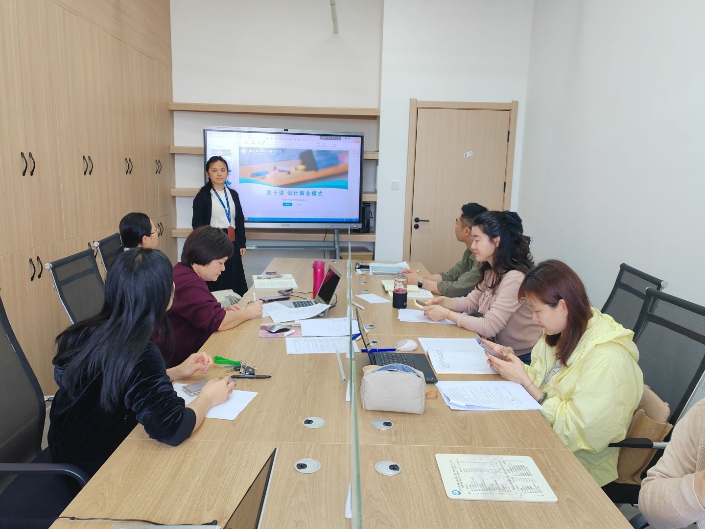 本次教研活動聚焦于課程專題七《設(shè)計商業(yè)模式》的深度探討與教學創(chuàng)新?;顒右潦?,由朱慧君老師擔任主講,她從教學目標、教學內(nèi)容、教學重難點、教學方法及教學設(shè)計等多個維度,對《設(shè)計商業(yè)模式》專題進行了全面而系統(tǒng)的剖析。朱老師巧妙結(jié)合多個典型案例,深入淺出地講解了商業(yè)模式的核心概念、主要類型、構(gòu)建與創(chuàng)新方法,以及商業(yè)畫布這一重要工具的應(yīng)用框架。通過生動的講解,不僅幫助學生深入理解了商業(yè)模式設(shè)計的底層邏輯,還使他們掌握了商業(yè)畫布工具的使用技巧,進一步激發(fā)了學生在商業(yè)模式創(chuàng)新領(lǐng)域的實踐熱情與創(chuàng)造力,為未來的創(chuàng)業(yè)之路奠定了堅實基礎(chǔ)。