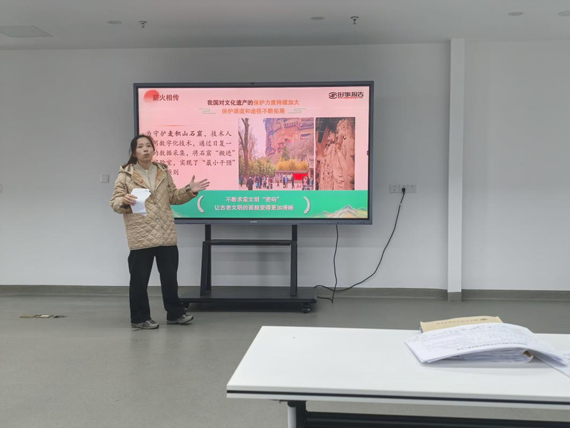 何維康老師和余夢莉老師分別對“文化遺產(chǎn)的傳承和保護(hù)”“在創(chuàng)造性轉(zhuǎn)化和創(chuàng)新性發(fā)展中賡續(xù)中華文脈”進(jìn)行片段展示,引導(dǎo)學(xué)生從身邊文化現(xiàn)象入手,深入思考文化強(qiáng)國的意義與路徑。