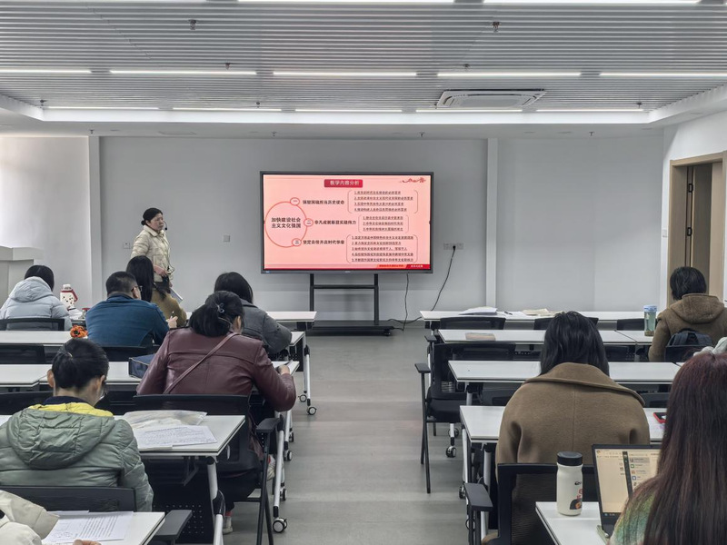 集體備課會中,藍(lán)素瓊老師圍繞“加快建設(shè)社會主義文化強(qiáng)國”的研討主題,從為何要建設(shè)社會主義文化強(qiáng)國、為何能建設(shè)社會主義文化強(qiáng)國、如何加快建設(shè)社會主義文化強(qiáng)國等三個(gè)方面進(jìn)行了生動講解。在教學(xué)設(shè)計(jì)中,采用小組討論、案例分析和課堂互動相結(jié)合的方式,運(yùn)用貼近學(xué)生生活的案例和前沿文化項(xiàng)目,將抽象理論轉(zhuǎn)化為具象案例,激發(fā)學(xué)生的學(xué)習(xí)興趣和參與熱情。