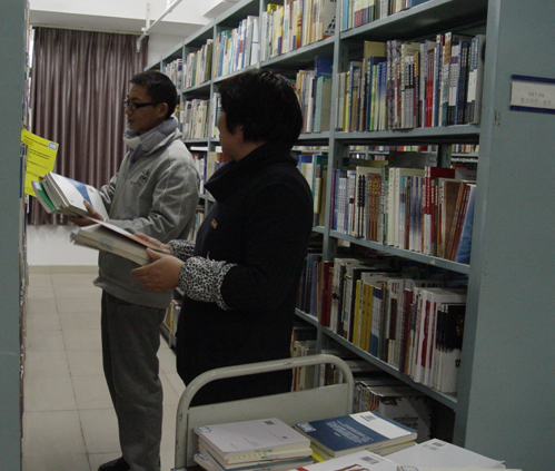 在學(xué)院“兩訪兩創(chuàng)”及“三風(fēng)建設(shè)”工作如火如荼開展之際,圖書館積極緊跟學(xué)院步伐,館中黨員、年青工作人員發(fā)揮先鋒模范作用,利用每周一、周四兩個晚上、周三下午進(jìn)行加班加點。帶班老師組織勤工儉學(xué)同學(xué)及義工對圖書館8樓的密集圖書進(jìn)行分類整理、上架。密集圖書灰塵大、數(shù)量多,給分類、整理及上架工作帶來不小的挑戰(zhàn),但加班的師生不懼困難,他們分組有序地進(jìn)行分類、調(diào)撥、打包、上架,干十足勁。