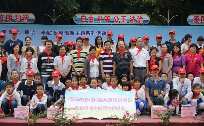 10月22日下午,我院圖書館與齊安小學(xué)共同舉辦“大手拉小手讓愛漂流讓書香溢滿校園”——福建船政交通職業(yè)學(xué)院圖書館愛心圖書角援建及黨員與農(nóng)民工子女結(jié)對(duì)幫扶活動(dòng),該活動(dòng)為學(xué)院“勤政、廉潔、奉獻(xiàn)”反腐倡廉主題系列活動(dòng)之一。院黨委陳炎生副書記、齊安小學(xué)趙敏娟校長、蓋山鎮(zhèn)政府領(lǐng)導(dǎo)、學(xué)院紀(jì)檢監(jiān)察處林建斌處長、圖書館陳家越館長及團(tuán)委王雪梅副書記等領(lǐng)導(dǎo)出席了本次活動(dòng)。