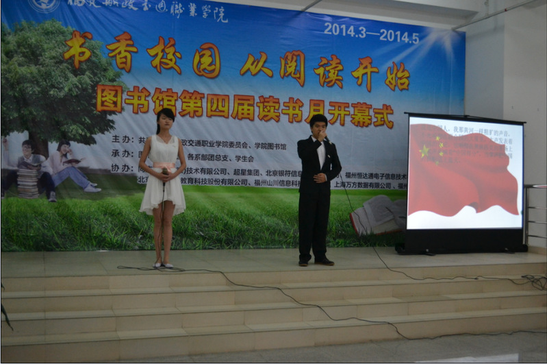 開(kāi)幕式上,學(xué)院黨委書(shū)記江定濤做了精彩致辭,充分肯定了本次活動(dòng)的重要意義?;顒?dòng)還評(píng)選出圖書(shū)館青年志愿者“愛(ài)心大使”、青年志愿者Q版卡通形象獲獎(jiǎng)作品以及“讀經(jīng)典學(xué)榜樣”詩(shī)歌朗誦比賽獲獎(jiǎng)?wù)?,獲獎(jiǎng)選手受到了學(xué)院的表彰,并在現(xiàn)場(chǎng)進(jìn)行了精彩的展演。
