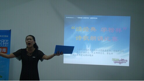 3月22日,圖書(shū)館“書(shū)香校園從閱讀開(kāi)始”第四屆讀書(shū)月系列活動(dòng)“讀經(jīng)典學(xué)榜樣”詩(shī)歌朗誦比賽在圖書(shū)館9樓活動(dòng)室舉行。全院近30名選手報(bào)名參加了比賽。