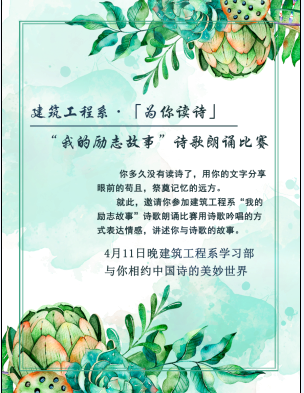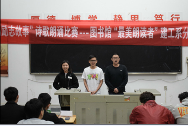 近日,建工系團總支承辦了圖書館為你讀詩2017世界詩歌日特別活動分賽場——“我的勵志故事”尋找最美朗讀者活動。