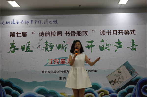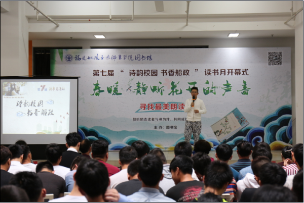4月26日下午,我院隆重舉行“尋找最美朗讀者”活動(dòng)決賽暨“詩韻校園 書香船政”圖書館第七屆讀書月系列活動(dòng)開幕式。學(xué)院陳艷紅副院長、相關(guān)職能部門負(fù)責(zé)人、各系部黨總支書記及優(yōu)秀校友福建電視臺(tái)著名主持人陳朱海應(yīng)邀參加了開幕活動(dòng)。