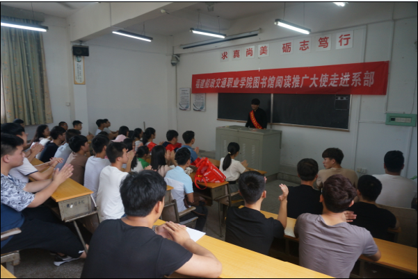 近日,我館首批“閱讀推廣大使”先后走進(jìn)了管理系、汽車系、建工系等系部。