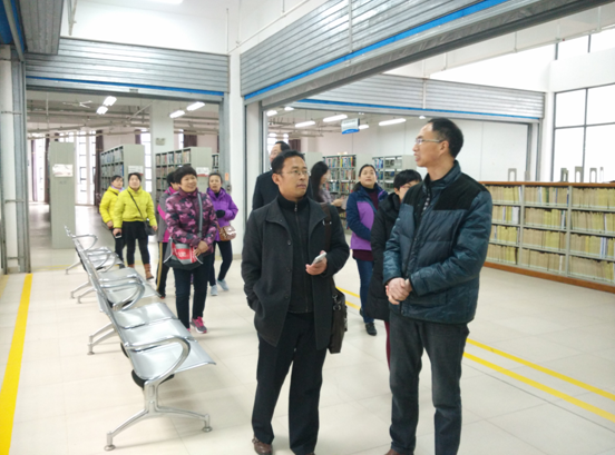 交流會(huì)結(jié)束后,陳館長(zhǎng)陪同韓廷水館長(zhǎng)一行參觀了校史館和圖書館各類閱覽室、開架書庫(kù)及二線書庫(kù)。