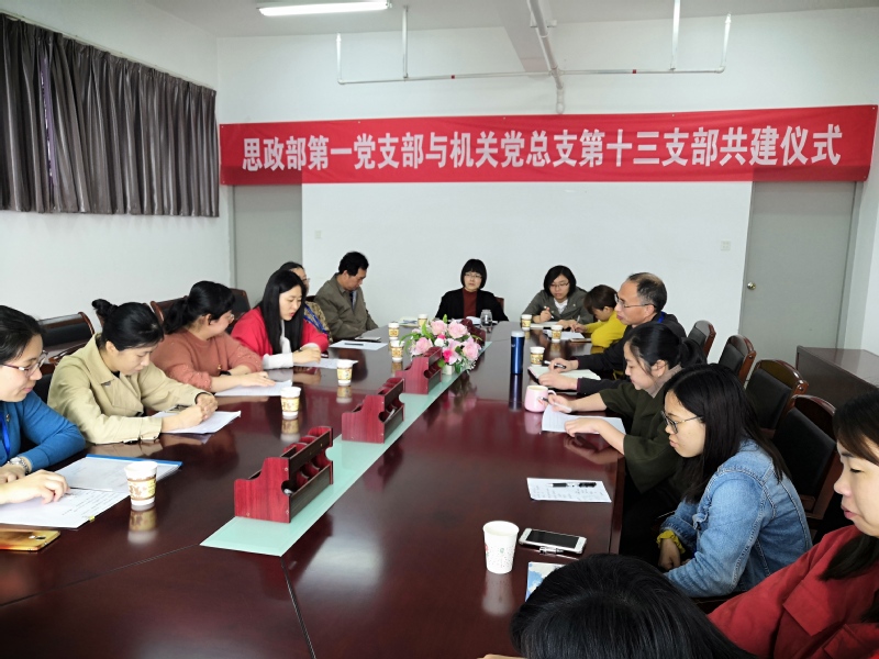 為深入貫徹落實(shí)黨的十九大精神和習(xí)近平新時(shí)代中國特色社會(huì)主義思想,著力提升基層黨建工作水平,落實(shí)學(xué)院黨委對基層黨建的有關(guān)部署,進(jìn)一步推進(jìn)、鞏固和擴(kuò)大“兩學(xué)一做”學(xué)習(xí)教育常態(tài)化成果,努力形成“抓黨建、帶隊(duì)伍、促發(fā)展”的整體合力,3月28日上午9點(diǎn),機(jī)關(guān)第十三黨支部與思政部第一黨支部在圖書館9樓會(huì)議室隆重舉行結(jié)對共建儀式。圖書館館長、機(jī)關(guān)第十三黨支部支部書記陳家越,思政部主任、黨總支書記趙黎,思政部副主任林佳梅,以及兩個(gè)支部全體成員參加了黨建結(jié)對共建座談會(huì),會(huì)議由機(jī)關(guān)第十三黨支部張帆老師主持,雙方就黨建結(jié)對共建開展深入交流討論。