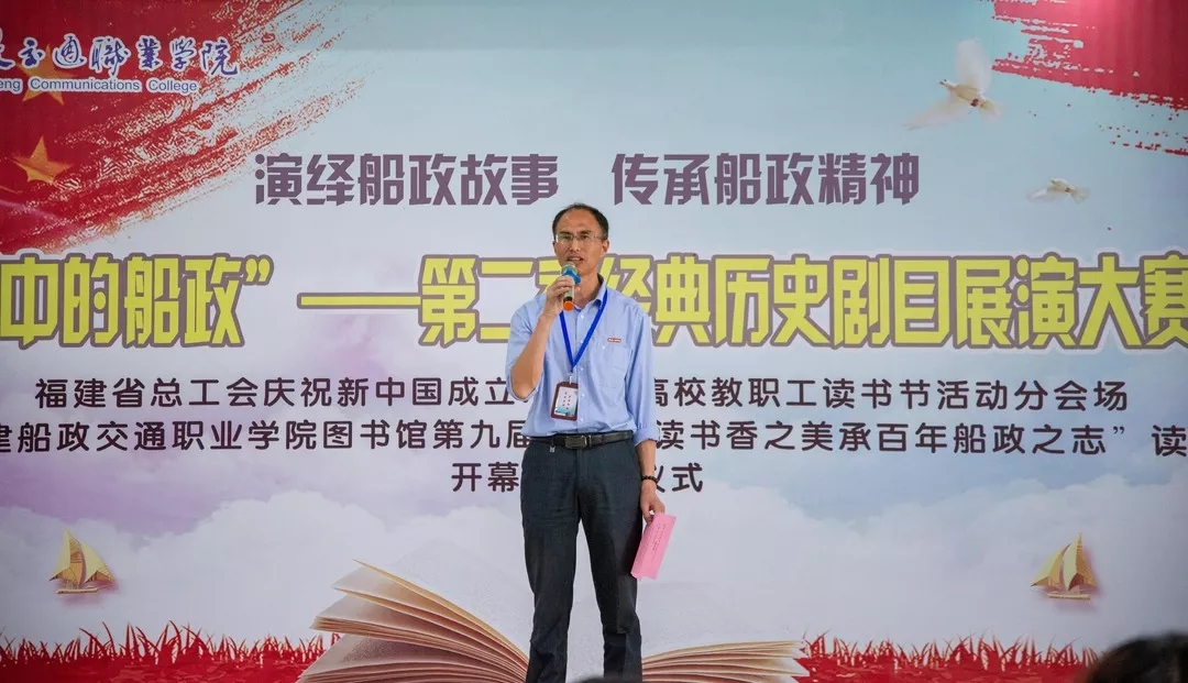 草長鶯飛春來到,人間四月讀書天。為慶祝新中國成立70周年,大力倡導(dǎo)“多讀書、讀好書、善讀書”良好風(fēng)尚,營造高校良好的教風(fēng)、學(xué)風(fēng),引導(dǎo)廣大高校教師進一步堅定“愛崗敬業(yè)、忠誠教育”的理想信念,福建省總工會以第24個“世界讀書日”為契機,在福建船政交通職業(yè)學(xué)院舉辦“我和我的祖國——慶祝新中國成立70周年暨2019年高校教職工讀書節(jié)”活動。