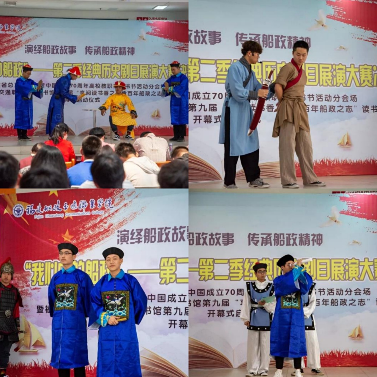 活動當(dāng)天來自學(xué)院各系部的參賽隊伍為師生們帶來了精彩的歷史劇目展演,通過形式多樣的藝術(shù)表現(xiàn)形式把船政文化生動的呈現(xiàn)給交院廣大的師生。