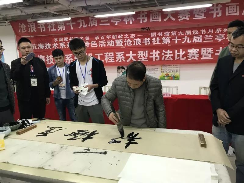 3月30號上午,航海技術系組織全系師生及書法愛好者開展了“享閱讀書香之美,承百年船政之志”——圖書館第九屆讀書月系列活動之航海技術系系部特色活動暨滄浪書社第十九屆蘭亭杯書法展印展及書法大賽?;顒釉趫D書館一樓自習室舉辦。本次活動邀請了輪機工程系主任陳清彬老師、林祥庚老師、航海技術系團總支林杰老師及后勤處老師謝小煌。