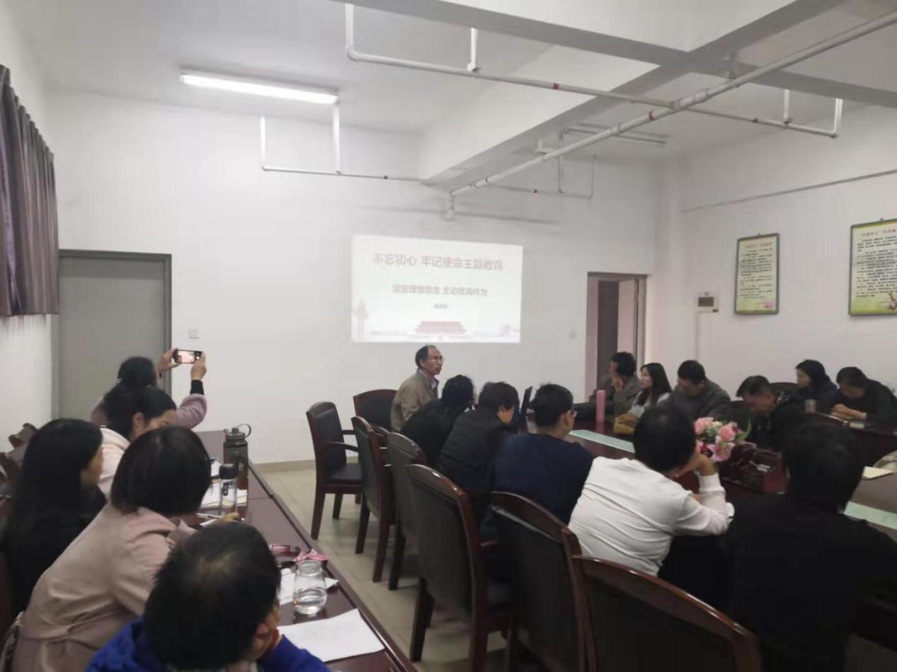 11月21日上午,根據學院“不忘初心、牢記使命”主題教育工作安排部署,圖書館館長陳家越在館內9樓會議室為全體館員做了“不忘初心,牢記使命”的專題黨課,他圍繞“以堅定的理想信念堅守初習心”、“堅定理想信念永葆政治本色”、“在知行合一中主動擔當作為”等三個方面進行了闡述。家越館長指出,我們要時刻不忘我們黨來自人民、根植人民,全體館員要深入學習習近平新時代中國特色社會主義思想,檢視自己的理想信念和思想言行,永葆政治本色,要自覺運用當代中國馬克思主義去改造客觀世界,在投身實踐過程中主動擔當作為。