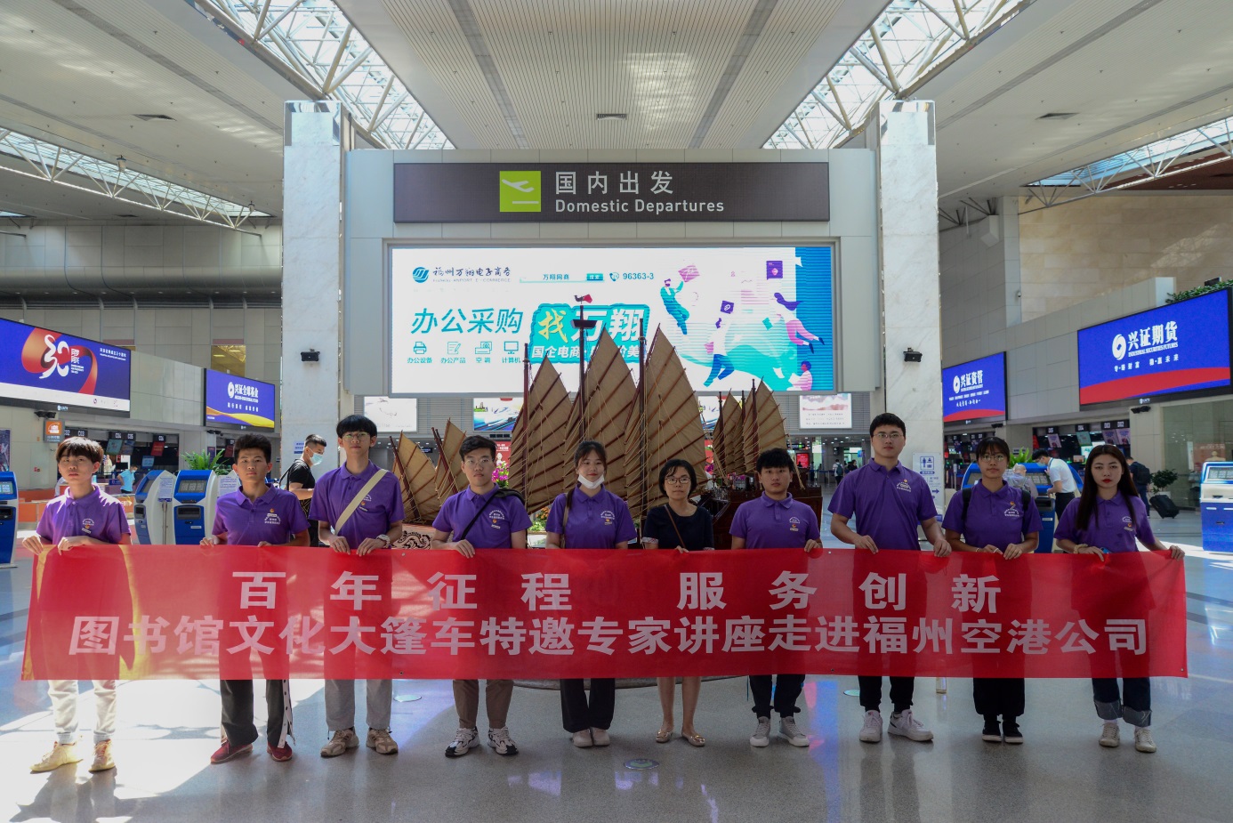 為深入學(xué)習(xí)貫徹全國職業(yè)教育大會精神,大力發(fā)揚(yáng)職業(yè)教育,大力弘揚(yáng)勞動光榮、技能寶貴、創(chuàng)造偉大的時(shí)代風(fēng)尚,根據(jù)學(xué)院2021年職業(yè)教育活動周的通知安排,5月26日,我館聯(lián)合航空學(xué)院走進(jìn)企業(yè)開展職教服務(wù)。當(dāng)天下午,在福州機(jī)場候機(jī)樓三樓航博館開展了“百年征程 服務(wù)創(chuàng)新——圖書館文化大篷車特邀專家講座走進(jìn)福州空港”活動。