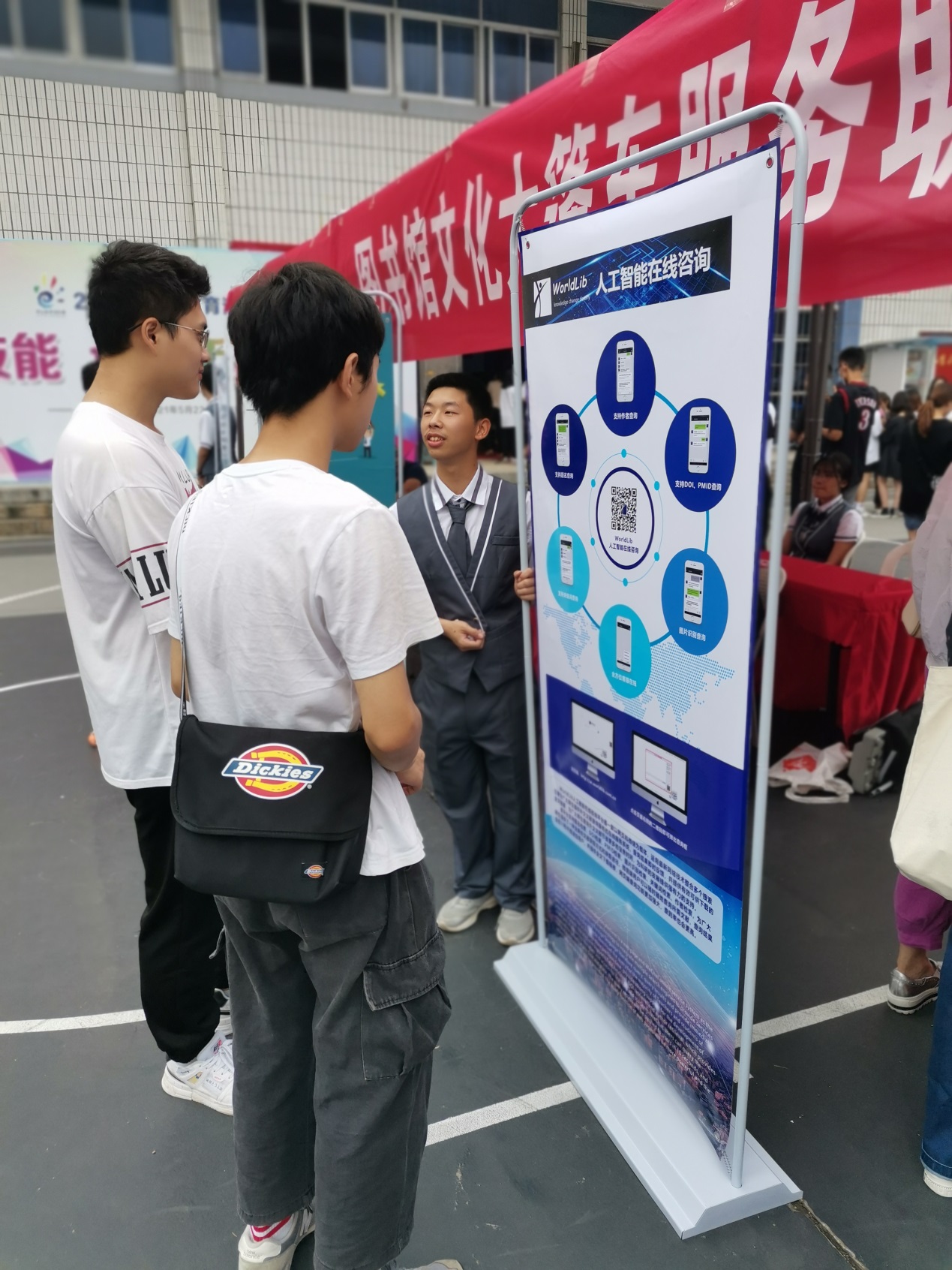 5月23日上午,圖書館在北區(qū)開展2021年職業(yè)教育活動周“為民服務(wù)日”活動。我館以宣傳展板、現(xiàn)場咨詢等形式宣傳展示圖書館數(shù)據(jù)庫資源,派發(fā)Worldlib、筆桿網(wǎng)、網(wǎng)上報(bào)告廳、中文在線等相關(guān)數(shù)據(jù)庫資源的宣傳單,并在現(xiàn)場為師生答疑解惑。其充分發(fā)揮了我館豐富的數(shù)據(jù)庫館藏資源優(yōu)勢,利用專業(yè)服務(wù)技能開展為廣大師生服務(wù)活動,也充分展示了我館在服務(wù)理念上的更新,在服務(wù)方式上的創(chuàng)新,讓廣大師生感知圖書館從傳統(tǒng)服務(wù)到現(xiàn)代服務(wù)上的轉(zhuǎn)變,體驗(yàn)信息服務(wù)在技術(shù)上滿足網(wǎng)絡(luò)帶給讀者的方便?,F(xiàn)場的活動贏得了廣大師生的一致好評。