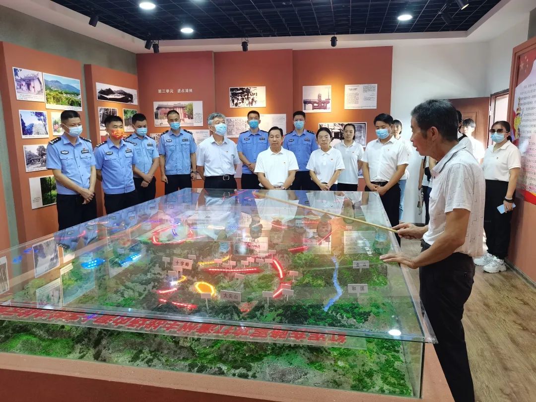 8月17日,學(xué)院張祖柱副院長(zhǎng)帶隊(duì),在南靖縣委竇秉政副縣長(zhǎng)的陪同下,圖書(shū)館黨支部黨員及共建單位公安廳團(tuán)委一行人,來(lái)到漳州戰(zhàn)役南靖決戰(zhàn)十字嶺戰(zhàn)斗舊址,開(kāi)展“紅色引領(lǐng)擔(dān)使命 聯(lián)合共建促發(fā)展”——公安廳團(tuán)委與我院圖書(shū)館黨支部共建活動(dòng)。一行人重走紅軍攻克漳州路,并參觀漳州戰(zhàn)役南靖決戰(zhàn)紀(jì)念室。
