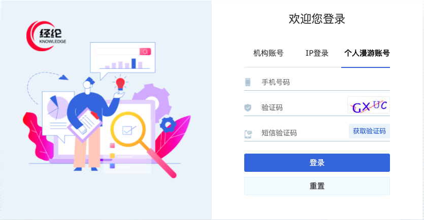個人登錄注冊,需在學(xué)校IP范圍內(nèi),選擇“個人漫游賬號”,通過手機號注冊,即可在學(xué)校IP范圍外訪問。