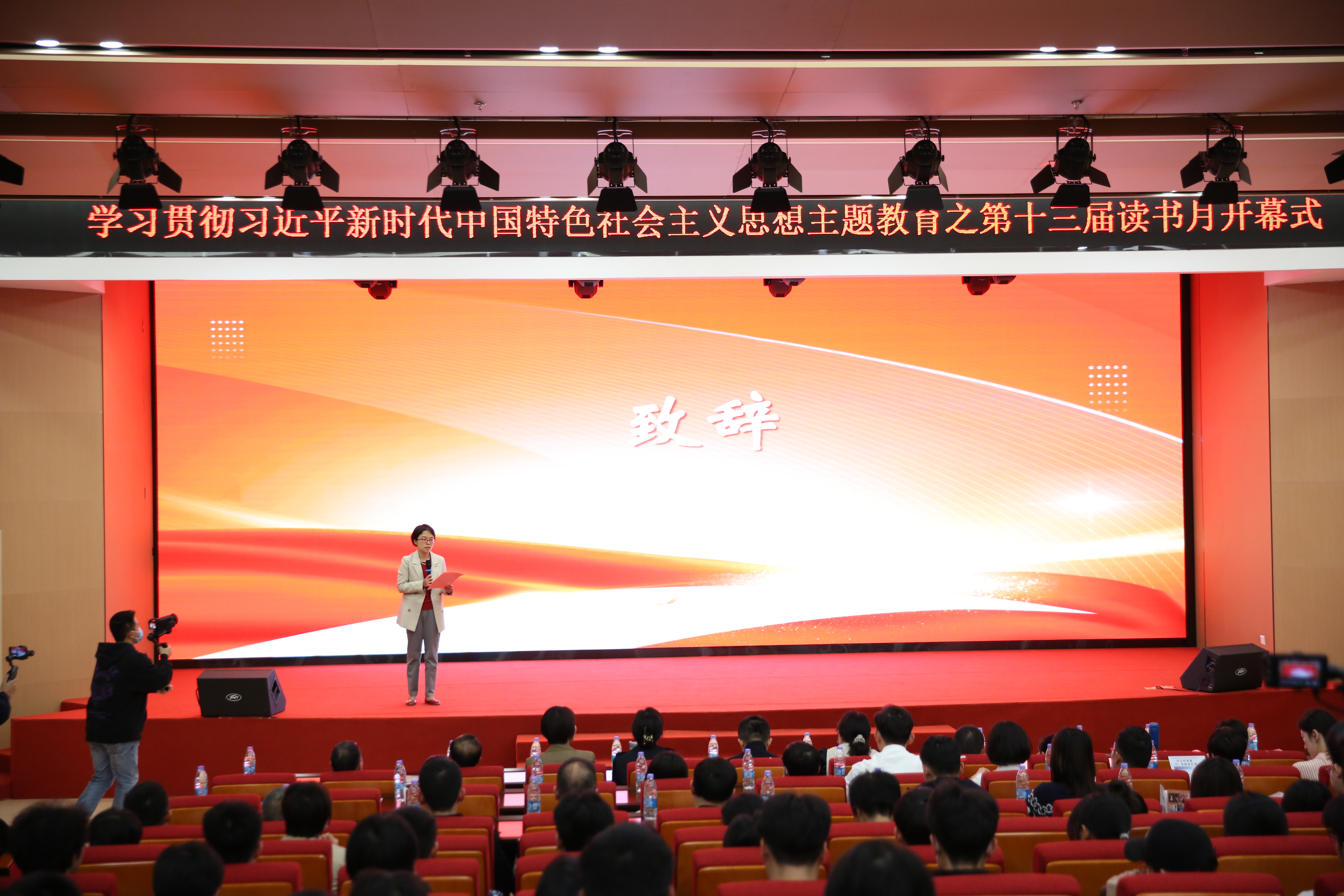 4月26日,學(xué)習(xí)貫徹習(xí)近平新時(shí)代中國(guó)特色社會(huì)主義思想主題教育之“讀百科典籍,圓強(qiáng)國(guó)之夢(mèng)”——福建船政交通職業(yè)學(xué)院第十三屆讀書(shū)月系列活動(dòng)開(kāi)幕,開(kāi)幕式在福船園藝新樓331第一學(xué)術(shù)報(bào)告廳成功舉行。共建單位福建省公安廳團(tuán)委書(shū)記、福建省廣播影視集團(tuán)融媒中心總編室主任謝予川、及省公安廳青年民警與省廣播影視集團(tuán)融媒體資訊中心嘉賓、我校宣傳統(tǒng)戰(zhàn)部、組織部、團(tuán)委、機(jī)關(guān)黨總支、圖書(shū)館等機(jī)關(guān)部門(mén)領(lǐng)導(dǎo)、各二級(jí)學(xué)院書(shū)記和師生代表們出席此次活動(dòng)。