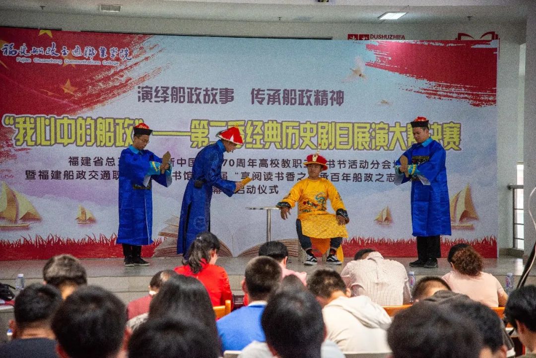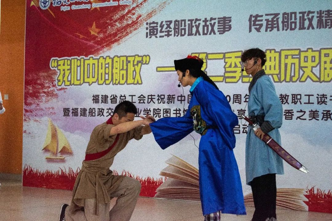 為深入宣傳船政文化,提升我館閱讀推廣活動育人功能,圖書館于近日在我校開展“傳承百年紅色基因  品閱書香船政文化”圖書館第十一屆讀書月系列活動暨“我心中的船政”第三季經(jīng)典歷史劇目展演比賽。
