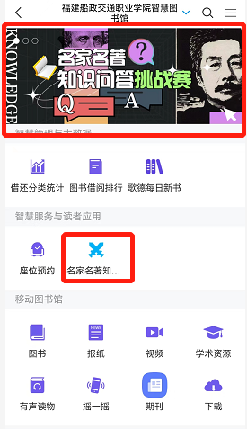 Step4:進(jìn)入首頁(yè),點(diǎn)擊“名家名著知識(shí)挑戰(zhàn)賽”,即可參與答題