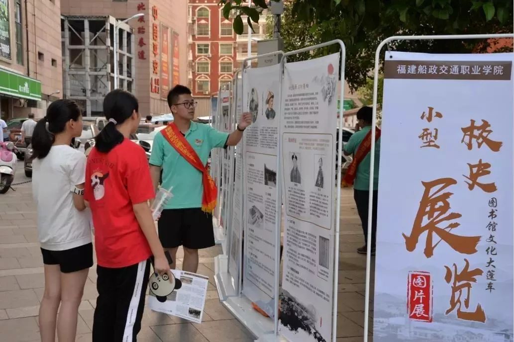 邀請(qǐng)文化大篷車特邀閱讀推廣人——優(yōu)秀校友陳朱海參與此活動(dòng),圖學(xué)聯(lián)干部承擔(dān)了主要工作,主要包括船政文化及校史宣傳講解、農(nóng)村家庭走訪調(diào)查、社區(qū)閱讀服務(wù)、愛(ài)心圖書(shū)漂流、置換等工作。