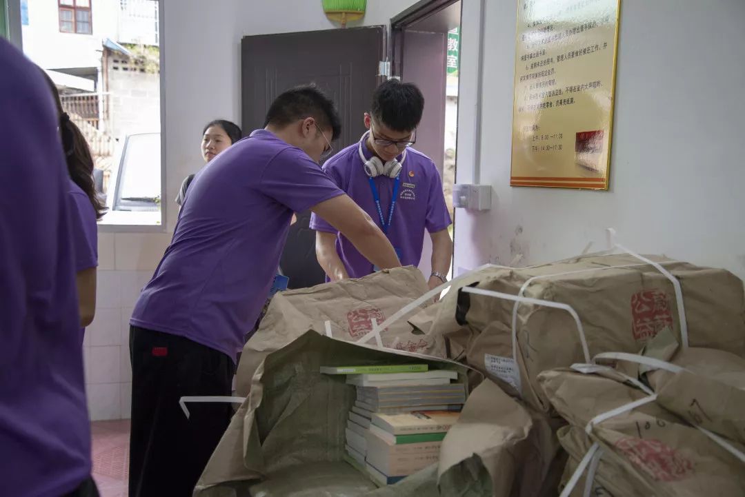 實踐團隊成員為愛心農(nóng)家書屋搬運整理書籍
