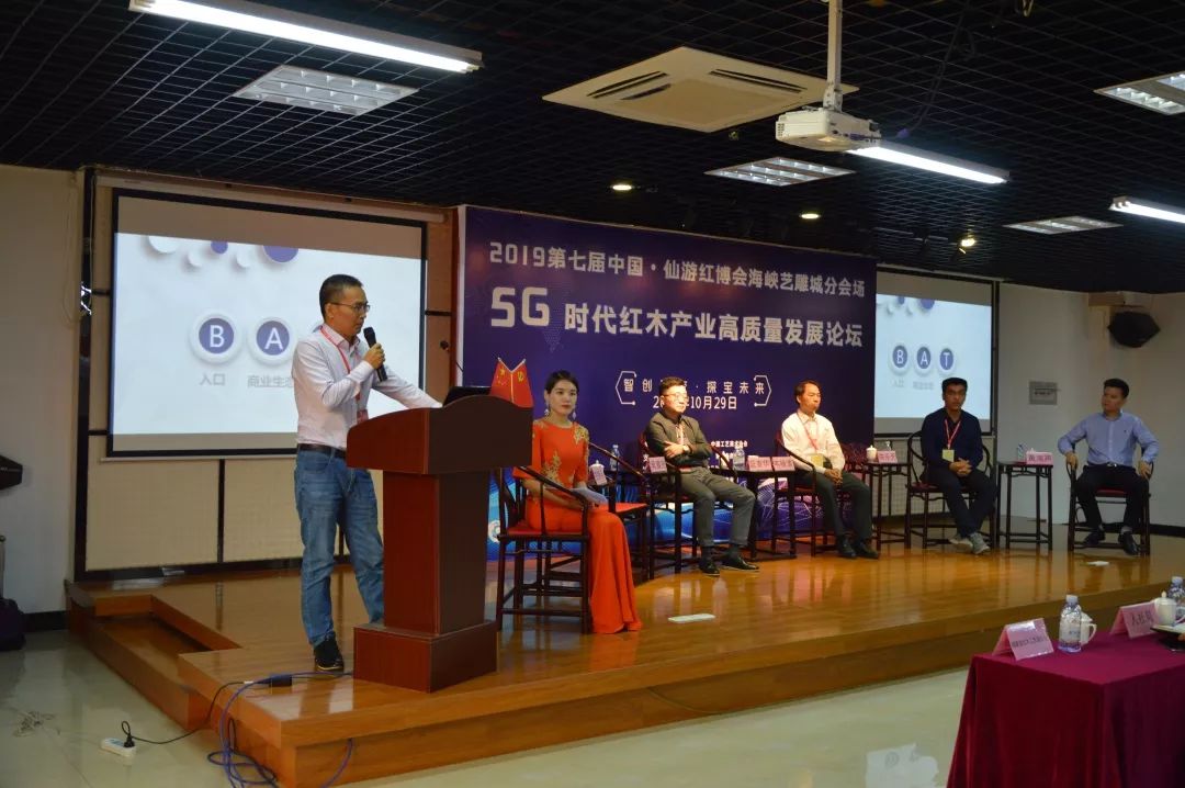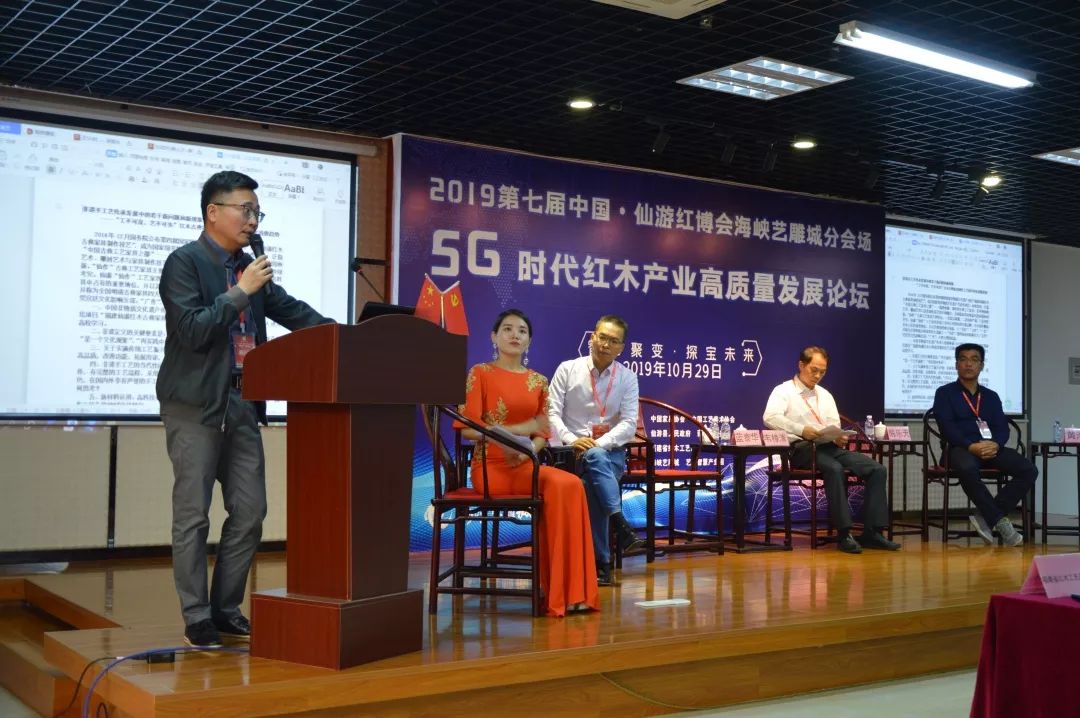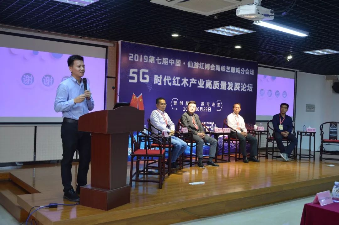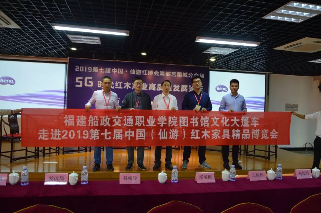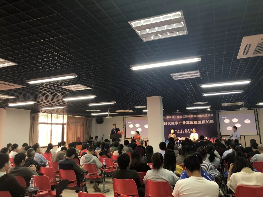 10月29日上午,2019第七屆中國(仙游)紅木家具精品博覽會海峽藝雕城分會場“智創(chuàng)聚變·探寶未來 —— 5G時代紅木產(chǎn)業(yè)高質(zhì)量發(fā)展論壇峰會高質(zhì)量發(fā)展論壇,在莆田仙游度尾海峽藝雕旅游城召開,我院圖書館文化大篷車特邀專家福建師范大學(xué)教授韋樟清、藍(lán)泰華,福建船政交通職業(yè)學(xué)院副教授陳樂天、吳章光走進(jìn)該論壇。幾位專家在論壇中,深入探討5G時代下紅木產(chǎn)業(yè)的轉(zhuǎn)型升級發(fā)展。百余位紅木及電商從業(yè)人士共同參會。