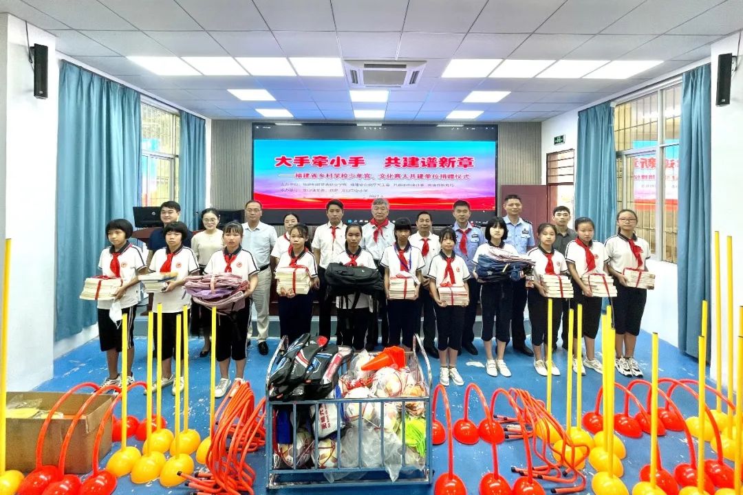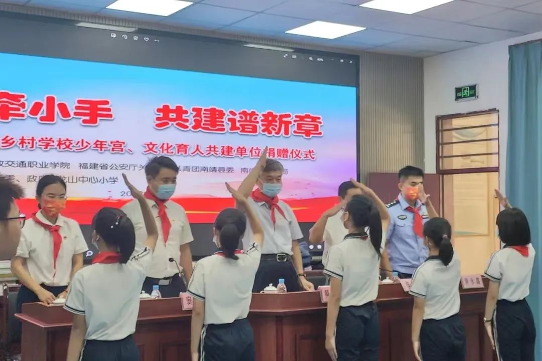 8月16日上午,我院黨委委員、副校長張祖柱、省公安廳關(guān)工委常務(wù)副主任、秘書長黃永忠、省公安廳團(tuán)委負(fù)責(zé)人、圖書館館長陳林帶領(lǐng)福建船政交通職業(yè)學(xué)院師生和省公安廳民警一行來到龍山中心小學(xué),舉行“大手牽小手,共建譜新章”——福建省鄉(xiāng)村學(xué)校少年宮、文化育人共建單位捐贈儀式。南靖縣委竇秉政副縣長,縣公安局、團(tuán)縣委、教育局、龍山鎮(zhèn)等部門相關(guān)領(lǐng)導(dǎo)參加活動。