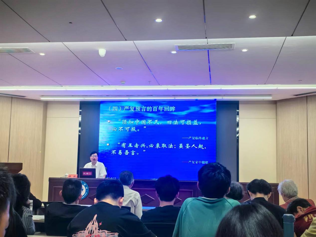 同學(xué)們?cè)谥驹阜?wù)的同時(shí),還觀摩了福建商學(xué)院國(guó)際經(jīng)貿(mào)學(xué)院副教授、博士、福建商學(xué)院閩商研究中心特約研究員林航作“20世紀(jì)閩都經(jīng)濟(jì)學(xué)家群體敘事”的專題講座。講座講述的是以“船政人物”嚴(yán)復(fù)為代表的閩都經(jīng)濟(jì)學(xué)家發(fā)揚(yáng)斗爭(zhēng)精神,賡續(xù)閩學(xué)基因,對(duì)舶來(lái)經(jīng)濟(jì)學(xué)說(shuō)中國(guó)化的探索歷程綿延百年,為中國(guó)經(jīng)濟(jì)學(xué)建設(shè)注入閩學(xué)精神,他們的開創(chuàng)性貢獻(xiàn)值得銘記和緬懷。在講座最后的問答互動(dòng)環(huán)節(jié)中,林航副教授親切熱情、娓娓道來(lái)地回答了同學(xué)們關(guān)注的問題。