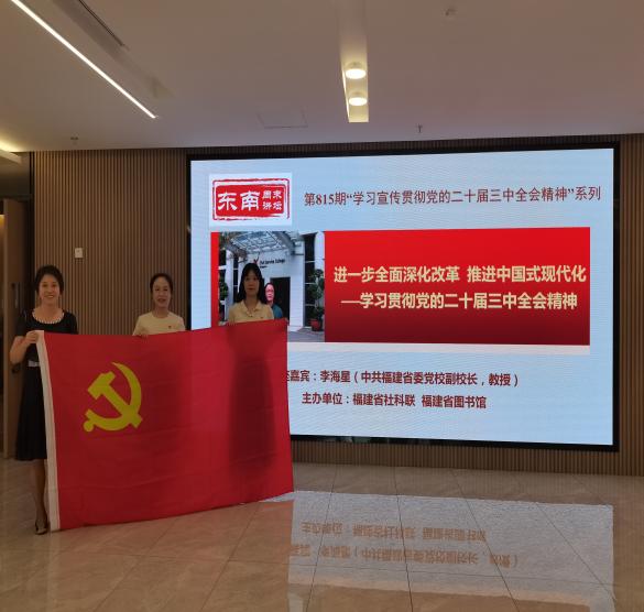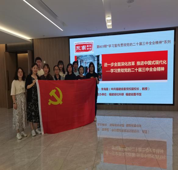 全體黨員走進(jìn)福建省圖書(shū)館“東南周末講壇”,聆聽(tīng)中共福建省委黨校副校長(zhǎng)、教授李海星作題為《進(jìn)一步全面深化改革 推進(jìn)中國(guó)式現(xiàn)代化——學(xué)習(xí)貫徹黨的二十屆三中全會(huì)精神》的專(zhuān)題講座,李海星教授緊緊圍繞黨的二十屆三中全會(huì)精神從“重大意義”“指導(dǎo)思想”“重大原則”“重大舉措”“實(shí)踐要求”等五個(gè)方面對(duì)黨的二十屆三中全會(huì)精神進(jìn)行進(jìn)行了系統(tǒng)、全面、深入的解讀。