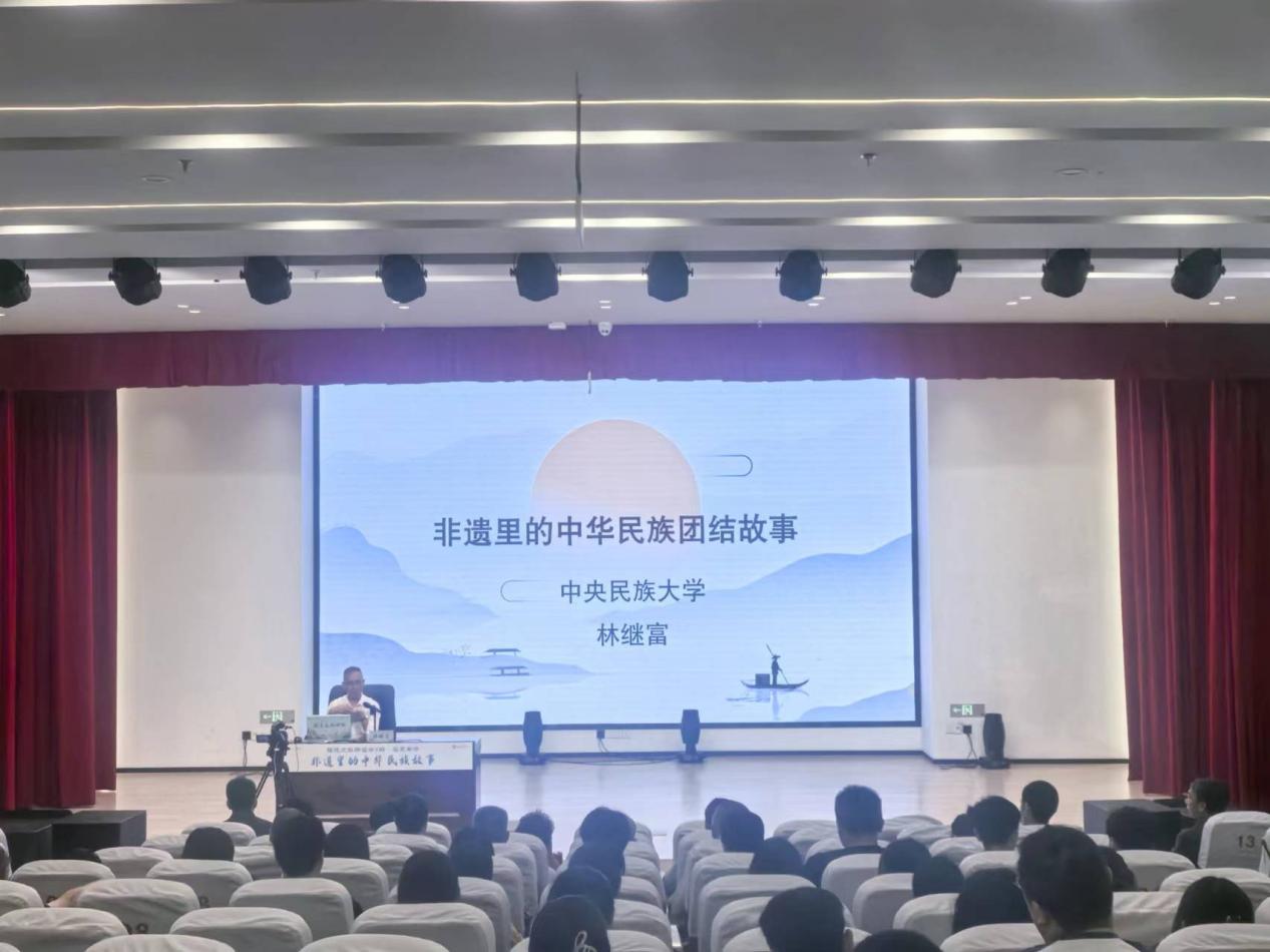 同學(xué)們在志愿服務(wù)的同時,還觀摩了名家專場《非遺里的中華民族故事》的講座,主講人中央民族大學(xué)教授、中國民俗學(xué)會副會長、中國民間文藝家協(xié)會副主席林繼富通過專業(yè)的學(xué)術(shù)知識和豐富的實例展示,從“洪水神話”“英雄史詩”“歷史傳說”三個維度,為大家揭示非遺在促進(jìn)民族團(tuán)結(jié)和鑄牢中華民族共同體意識中的重要作用。