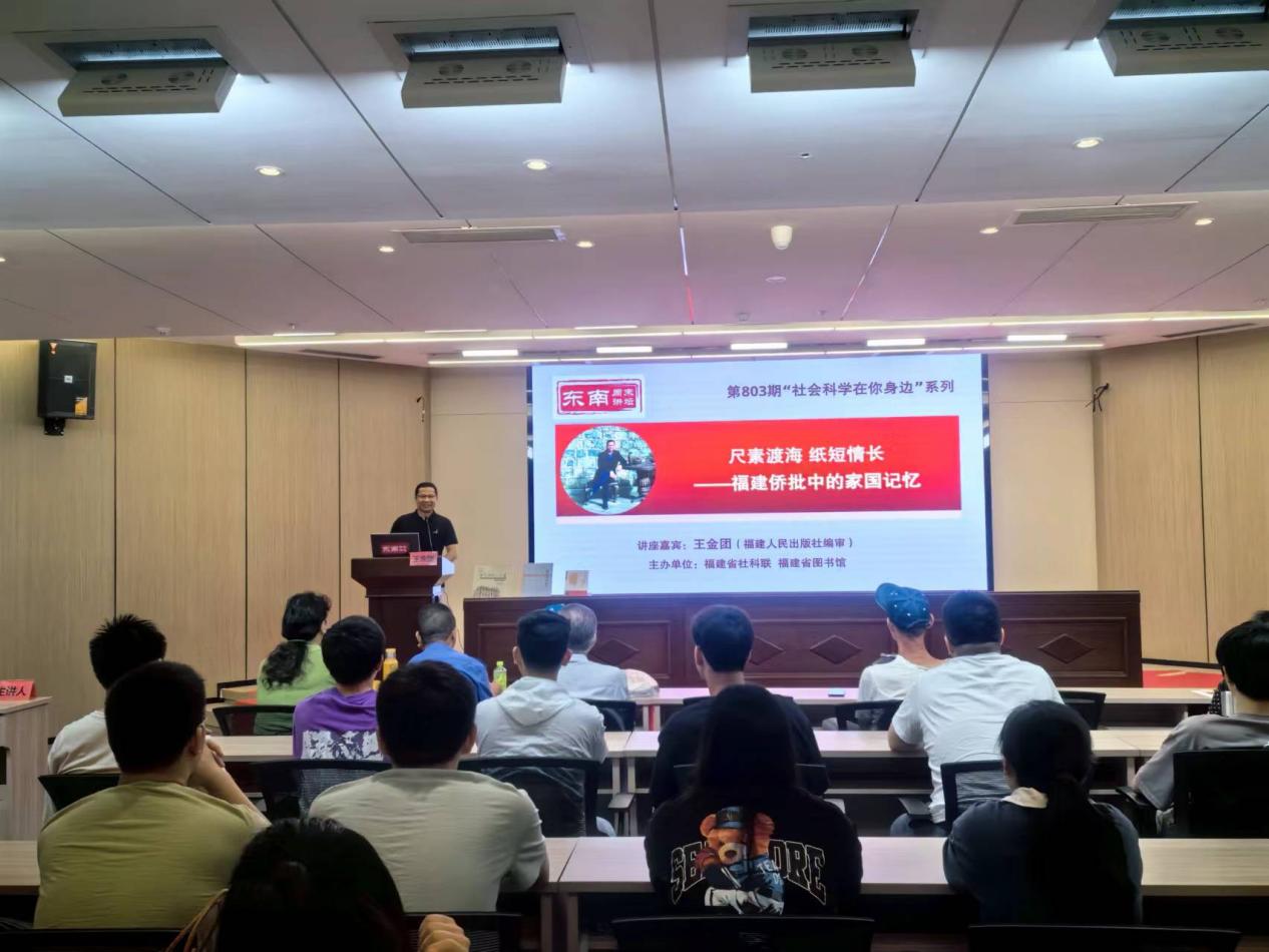 6月15日,學生志愿者們走進福建省圖書館為“東南周末講壇”活動提供文化志愿服務(wù),協(xié)助講座現(xiàn)場活動的接待、引賓、發(fā)放宣傳資料、填寫調(diào)查問卷、整理桌椅等,并觀摩了福建人民出版社總編室主任兼審讀室主任、編審王金團作題為《尺素渡海 紙短情長——福建僑批中的家國記憶》的學術(shù)講座,講座最后主講人與讀者們展開了熱烈的交流討論。通過深入解讀,讓學生了解什么是僑批,僑批產(chǎn)生的背景與條件,僑批業(yè)從興盛到衰落的發(fā)展過程,特別是福建僑批所蘊含的家國情懷與桑梓情意,以及僑批所蘊含的深厚歷史文化價值。