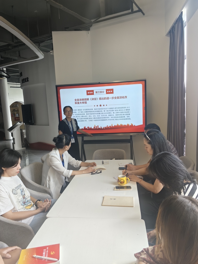9月12日,學(xué)習(xí)貫徹黨的二十屆三中全會(huì)精神專題宣講會(huì)在圖書館三樓黨建館舉行,圖書館黨支部書記陳林作宣講報(bào)告。圖書館支部全體黨員參加。