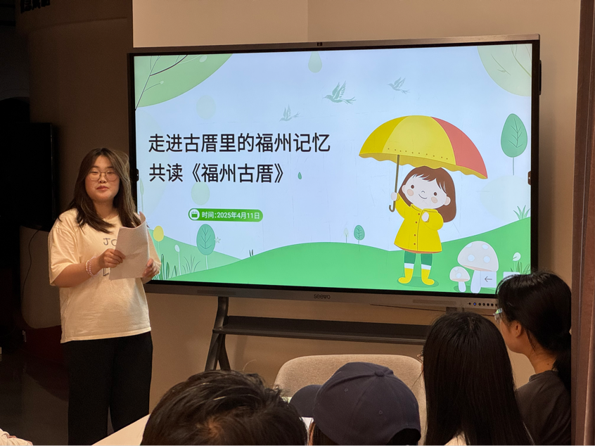 2025年4月11日,青春光影社團以福州古厝為文化底本,精心策劃了一場共讀活動。在活動進程中,借助對《福州古厝》的深度解讀以及熱烈的互動交流等形式,同學們不僅領略到了福州古厝的建筑之美,更深刻理解了福州古厝作為城市記憶和人文精神的象征意義,可謂收獲滿滿。
