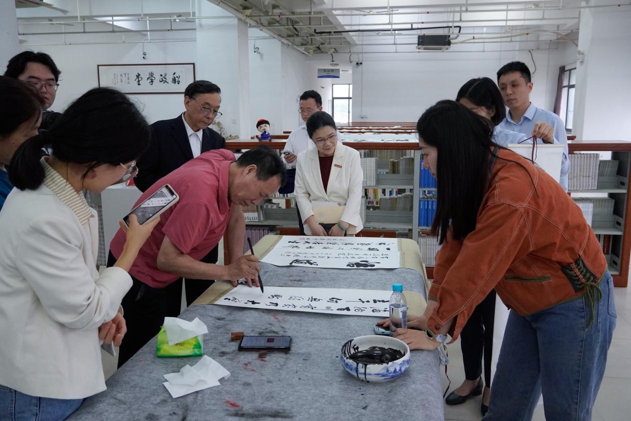 本次活動(dòng)還特別邀請(qǐng)了國家一級(jí)美術(shù)師、林則徐書畫院院長徐天春先生,及國內(nèi)十位知名書畫家齊聚一堂,在圖書館舉行“紀(jì)念林則徐誕辰240周年”暨“世界讀書日”特別行動(dòng)——林則徐名言佳句書法筆會(huì)。學(xué)院黨委書記陳宜大、院長陳群與各位領(lǐng)導(dǎo)、嘉賓、現(xiàn)場師生共同見證了這場藝術(shù)與精神的雙重盛宴。
