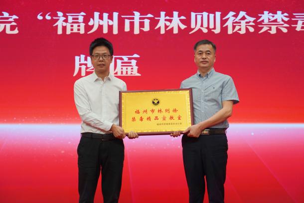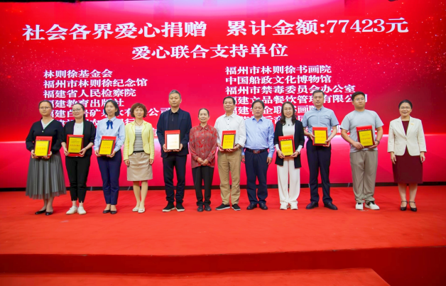 隨后,林則徐基金會(huì)副會(huì)長、沈葆楨第六代后裔沈園代表林則徐基金會(huì)將水墨長卷國畫作品惠贈(zèng)學(xué)院;福州市公安局禁毒支隊(duì)二級(jí)高級(jí)警長陳孔壽代表福州市禁毒辦向?qū)W院授發(fā)“福州市林則徐禁毒精品宣教室”牌匾;全國人大原常委、福建省人大常委會(huì)原副主任、林則徐基金會(huì)榮譽(yù)會(huì)長、林則徐第六代后裔林強(qiáng)代表林則徐基金會(huì)授予學(xué)院“愛心圖書室”牌匾。活動(dòng)還為愛心聯(lián)合支持單位進(jìn)行表彰。